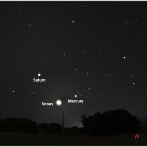 It’s very low in the west at sunset and is joined by Venus and Saturn.